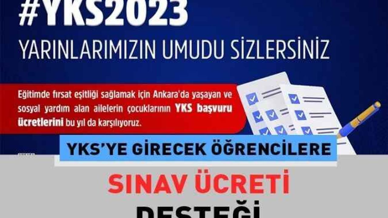 Ankara’da yaşayan 2 bin 985 öğrencinin toplam 811 bin 535 TL’lik YKS başvuru ücretleri ve sınav yol parası karşılanacak. Uygulamadan; eğitimde fırsat eşitliği sağlamak amacıyla YKS ücreti desteğinden Ankara’da yaşayan ve sosyal yardım alan ailelerin çocukları yararlanabilecek.