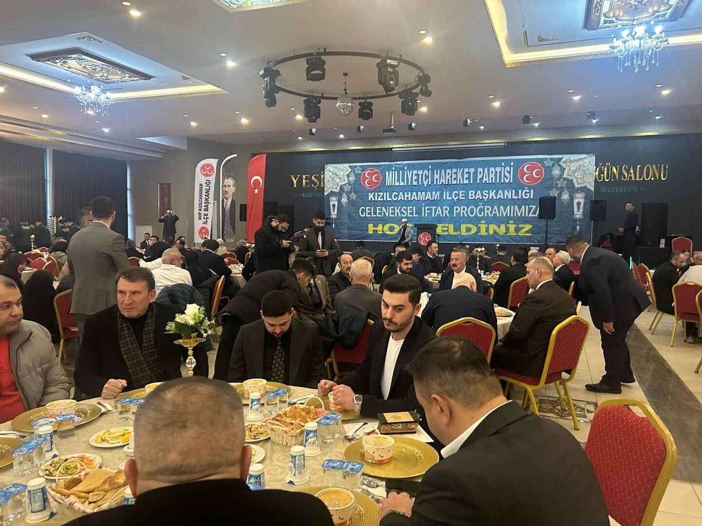 Kızılcahamam İlçe Başkanlığı tarafından düzenlenen iftar programına MHP Genel Başkan Yardımcısı Sadir Durmaz, Merkez Yönetim Kurulu Üyesi Muzaffer Gökmen, MHP Ankara İl Başkan Yardımcısı Vedat Atılgan, Kızılcahamam Belediye Başkanı Süleyman Acar, İlçe Başkanı Nuri Odacı ve Ankara Büyükşehir Belediye Meclisi Grup Başkan Vekili Yunus Emre Yıldırım katıldı.