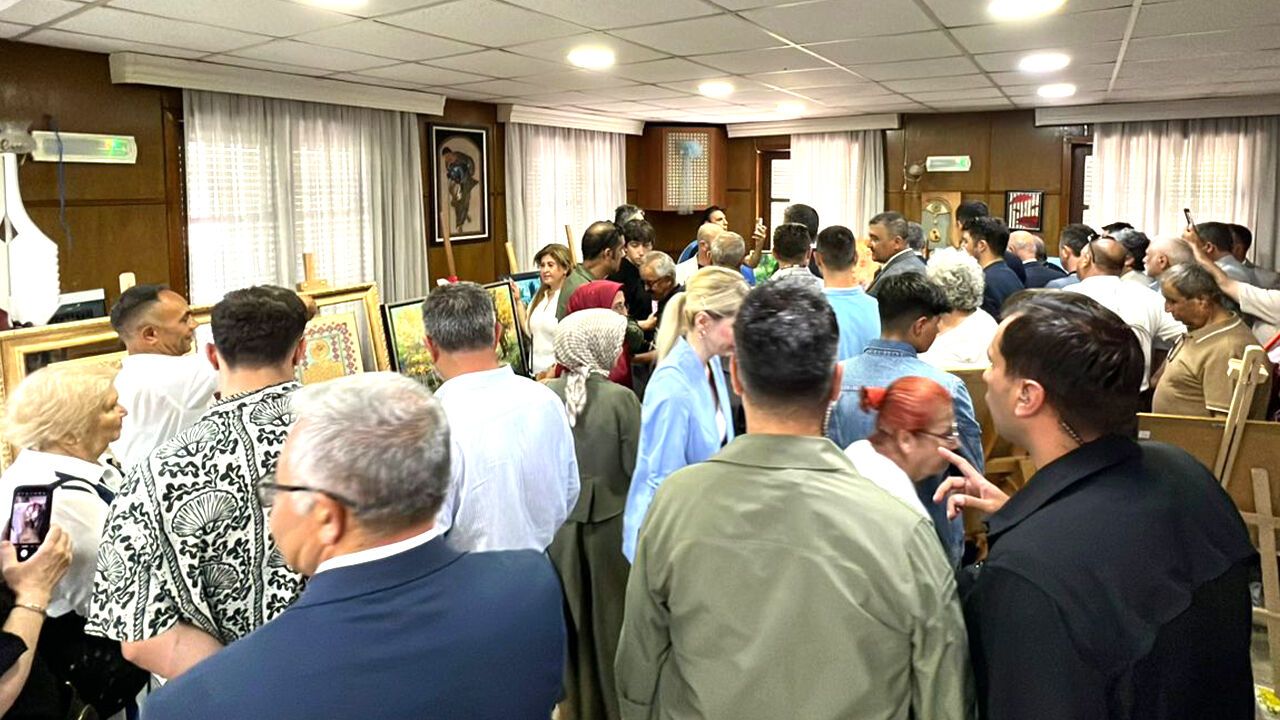 Yapılan konuşmaların ardından kurdele kesimi ve sanatçıların yaptıkları sergiyi gezdi.