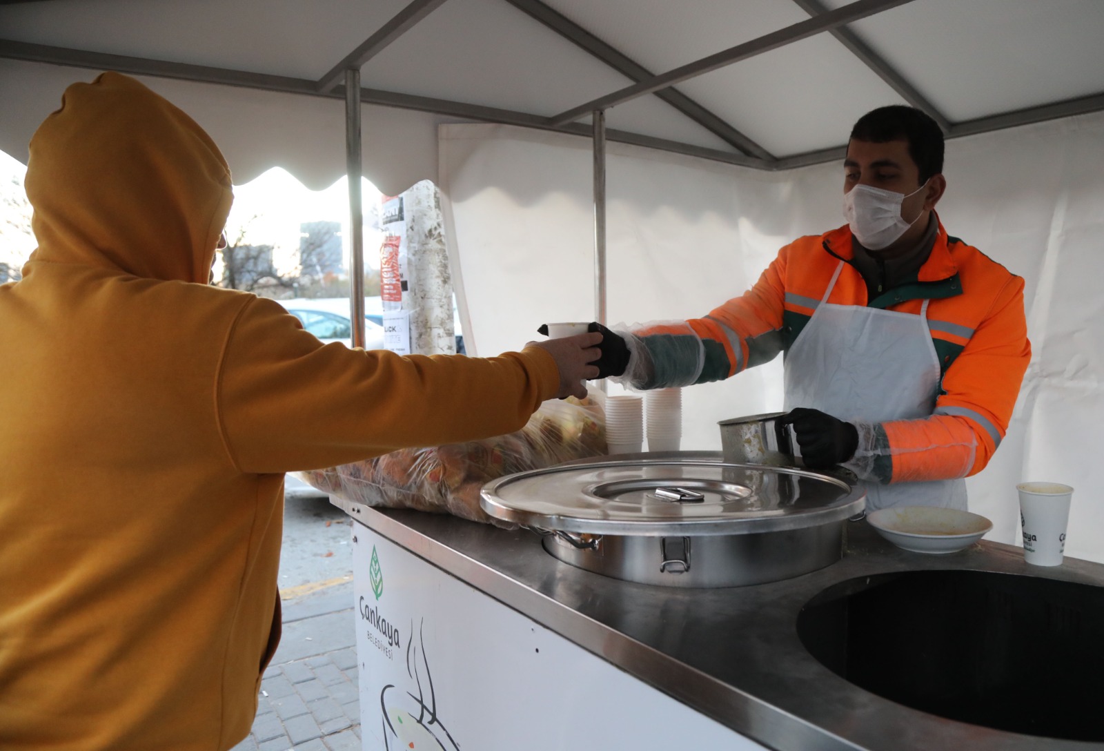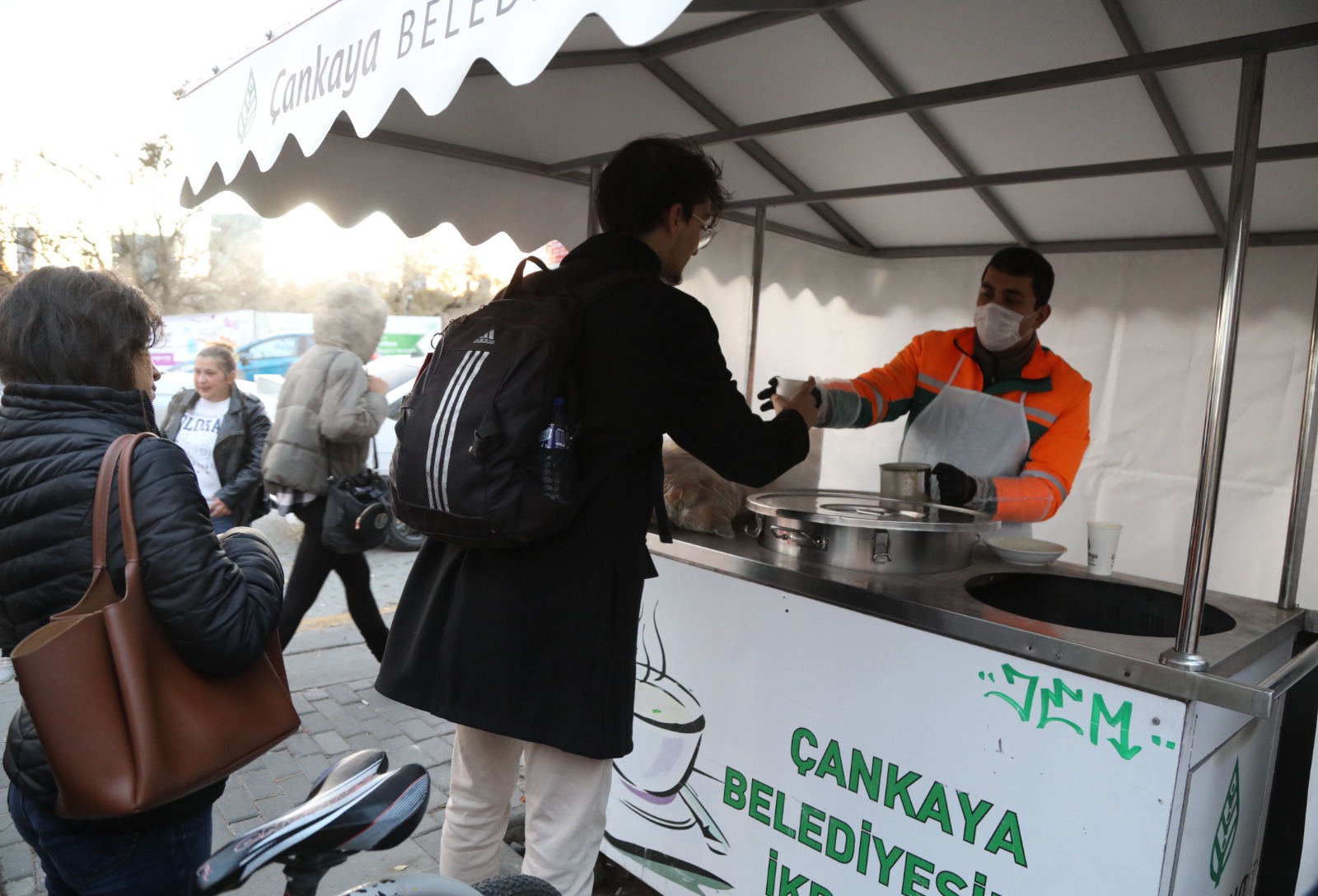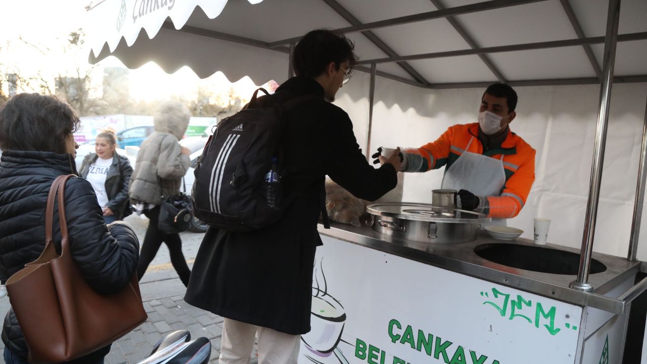 Ankara'nın soğuk sabahlarında işe ya da okula gitmek için yola çıkan Çankayalılar, belediye tarafından sıcak çorba ile karşılanıyor. Bu uygulama, hem vatandaşlara güne enerjik başlamaları için bir mola veriyor hem de soğuk kış günlerinde bir nebze olsun rahatlatıcı bir destek sunuyor.