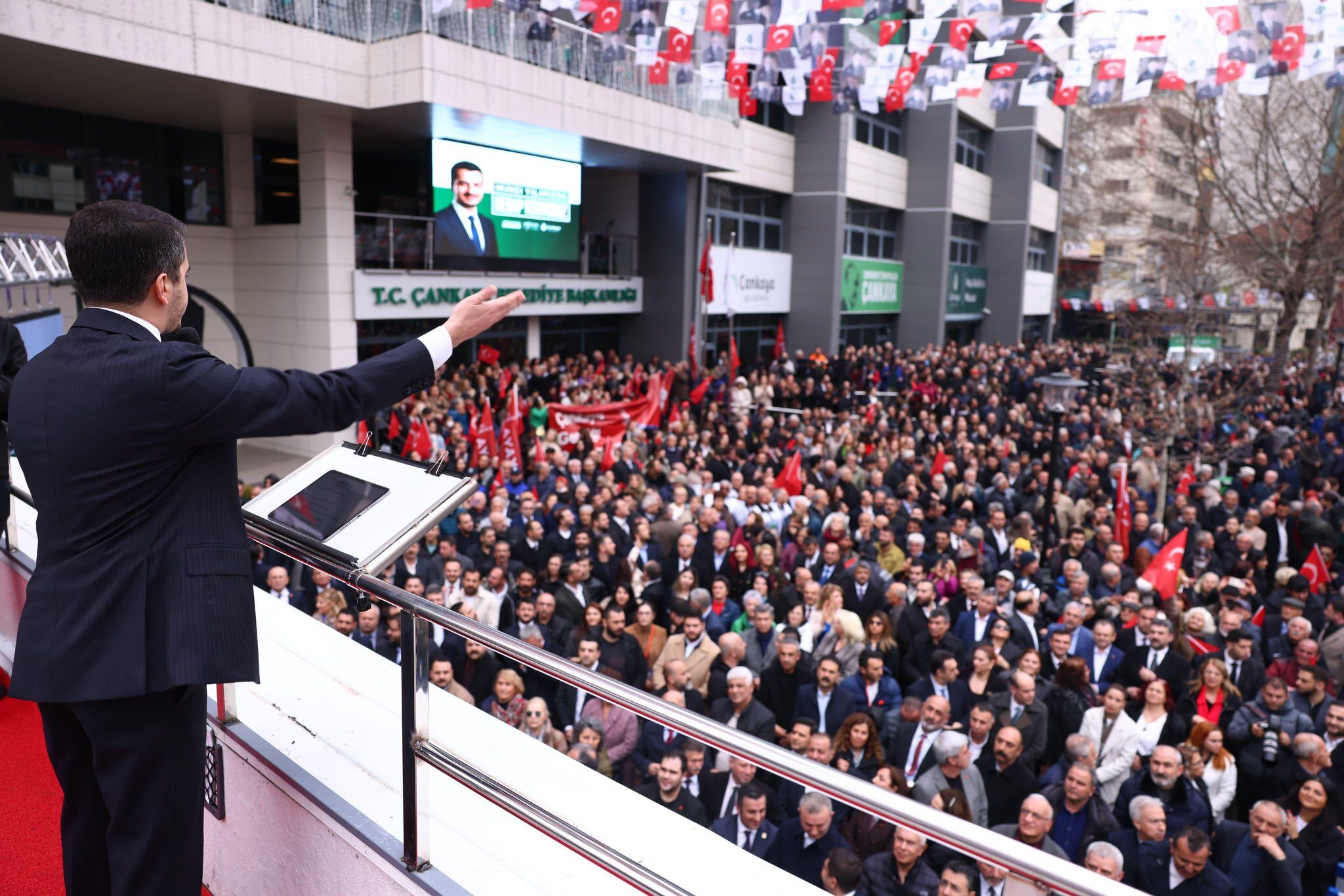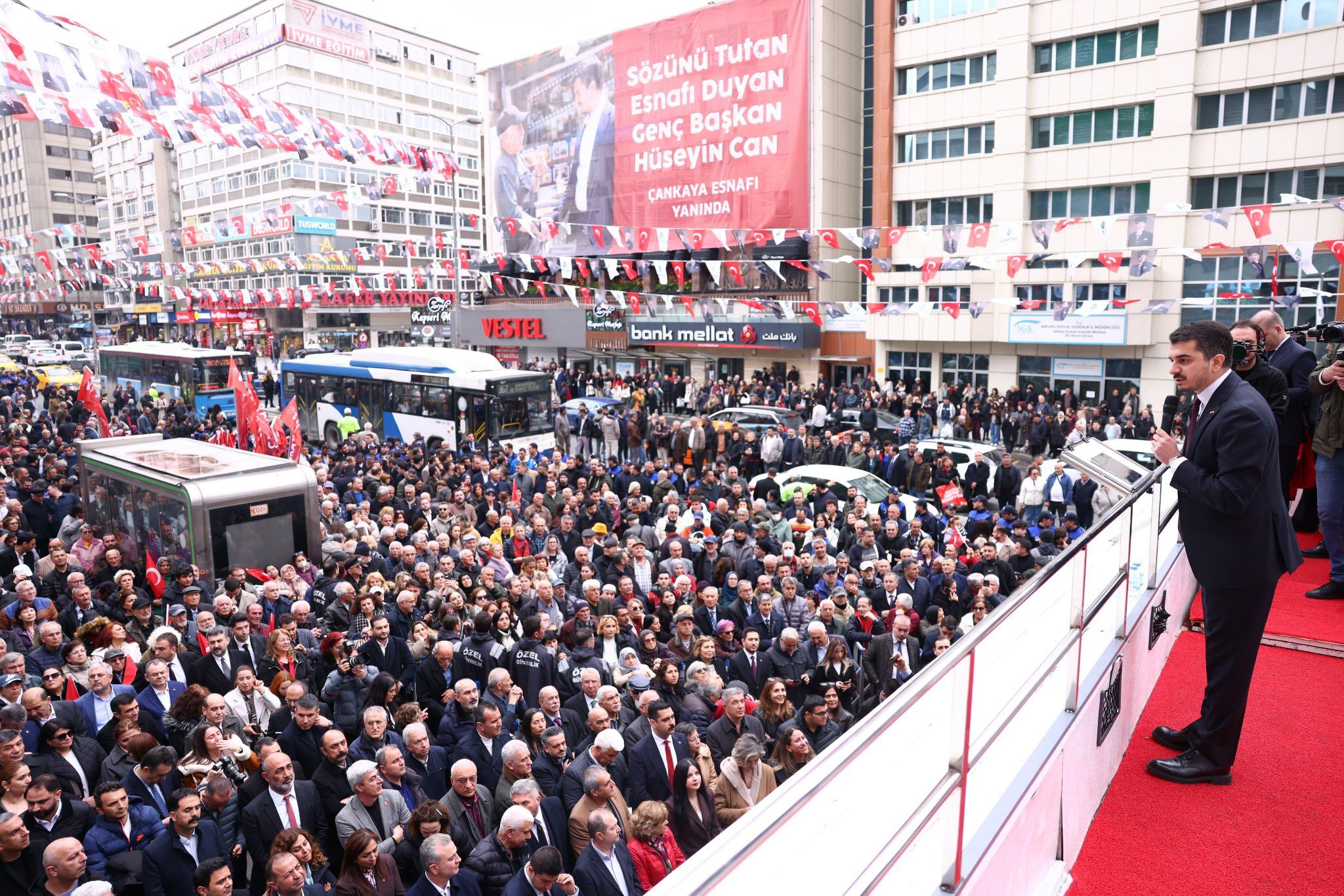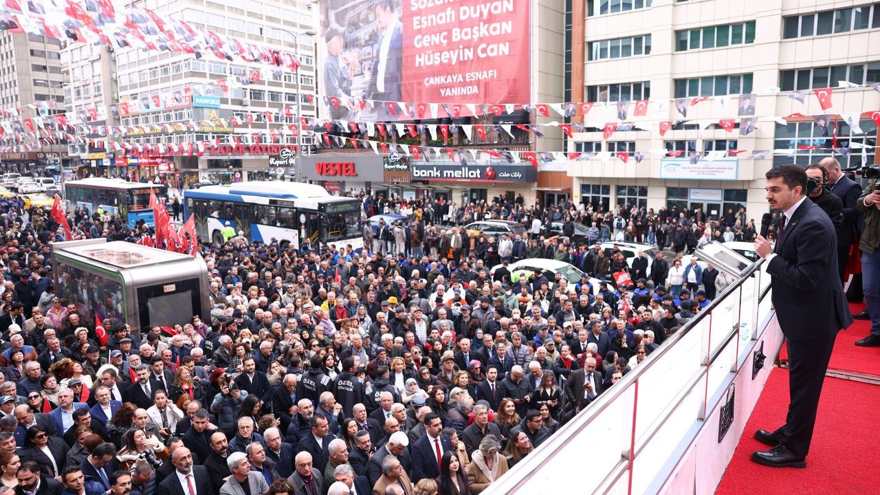 Çankaya Belediye Başkanı Hüseyin Can Güner, “İkinci Yılımızda Hesap Veriyoruz” sloganıyla düzenlenen toplantıda iki yıllık hizmet sürecini değerlendirdi. Belediye binası önünde vatandaşlarla buluşan Güner, elde edilen başarıların ortak emeğin sonucu olduğunu vurguladı. Toplantıya siyaset, yerel yönetim ve sivil toplum temsilcilerinin yanı sıra çok sayıda vatandaş katıldı.