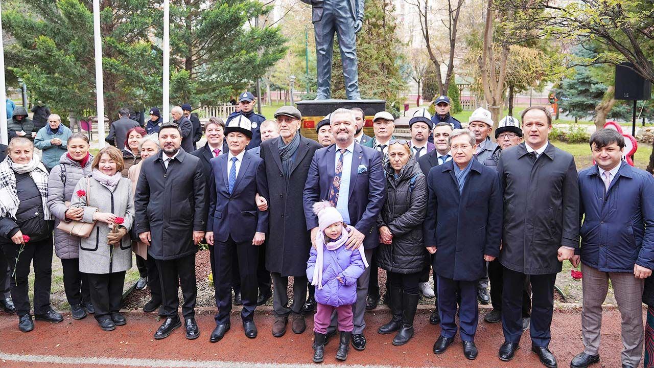 Tören, İstiklal Marşı ve Kırgızistan Milli Marşı’nın okunmasının ardından Aytmatov’un hayatı, eserleri ve Türk-Kırgız dostluğuna yaptığı katkılar hakkında yapılan konuşmalarla başladı. Kırgız sanatçıların kopuz dinletisinin ardından Aytmatov’un anıtına çelenk ve karanfiller bırakıldı.