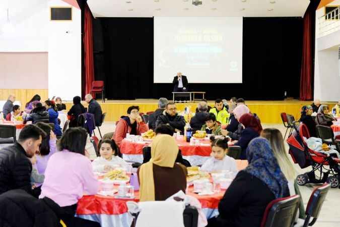 Düzenlenen iftar yemeğinde bir konuşma gerçekleştiren Belediye Başkanı Yalçın, ‘’Asrın felaketinde hayatını kaybedenlere Allah’tan rahmet, yaralılara acil şifalar dileyerek, depremin yaşandığı ilk andan itibaren ülke olarak büyük bir dayanışma ve yardımlaşma örneği gösterildiğini, yaraların yine hep birlikte dayanışma içinde sarılacağını söyleyerek Allah tüm felaketlerden ülkemizi ve milletimizi korusun’’ ifadelerini kullandı.