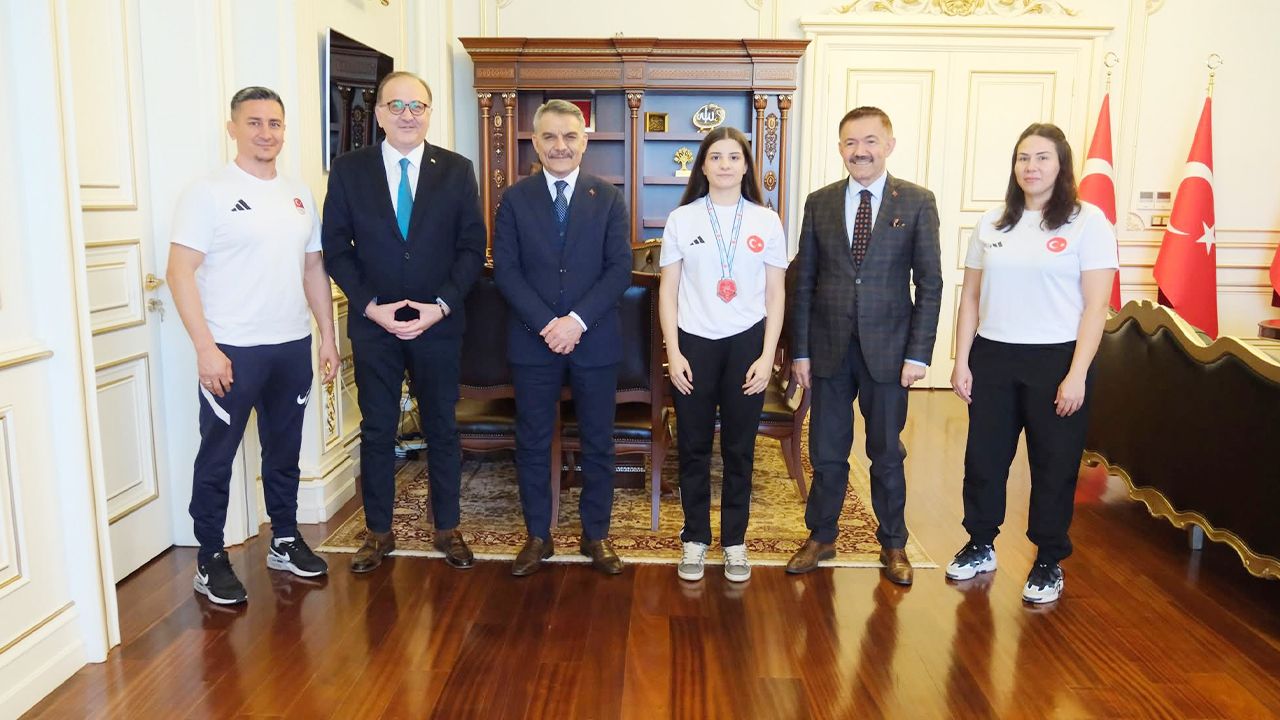 Şampiyon sporcumuz, İl Özel İdaresi Genel Sekreteri Nazif Yılmaz, Gençlik ve Spor İl Müdürü Şahin Hopur ve antrenörleri Rabia Köse ile Yusuf Köse eşliğinde Mehmet Ali Özkan’ı makamında ziyaret etti.