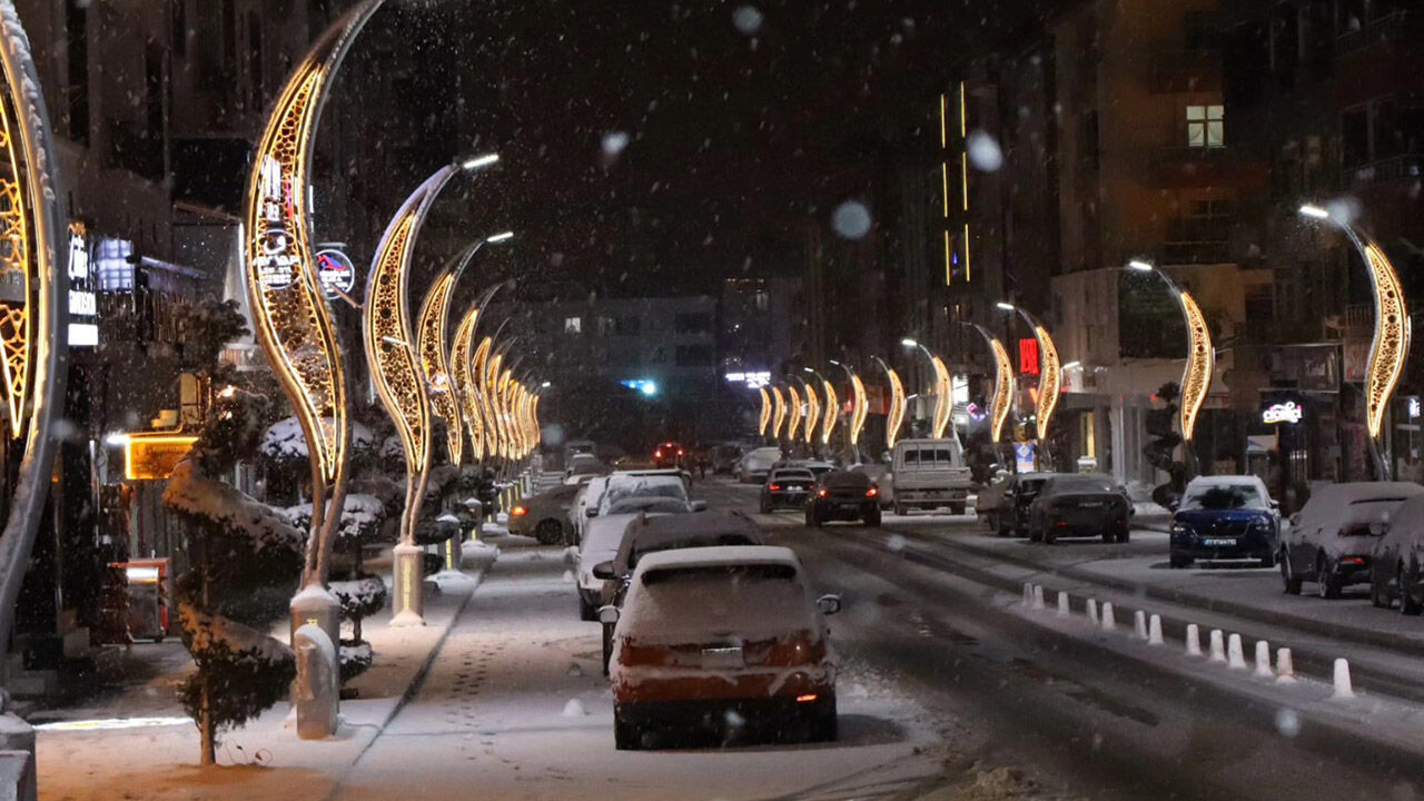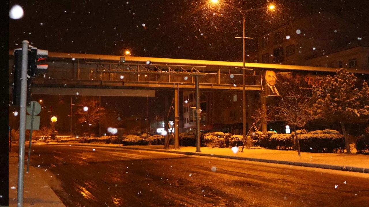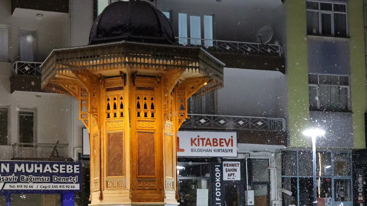 Akşam saatlerinde sokak lambalarının altında karın ışıl ışıl görüntüsü ilçeye ayrı bir estetik kattı.