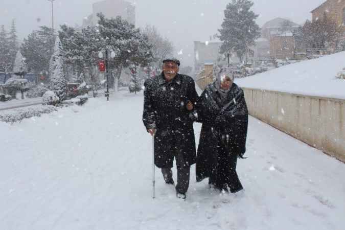 Yozgat'ta etkili olan kar yağışı kartpostallık görüntüler oluşturdu