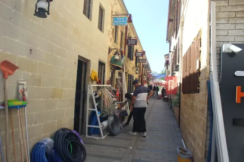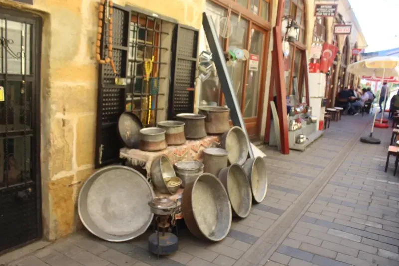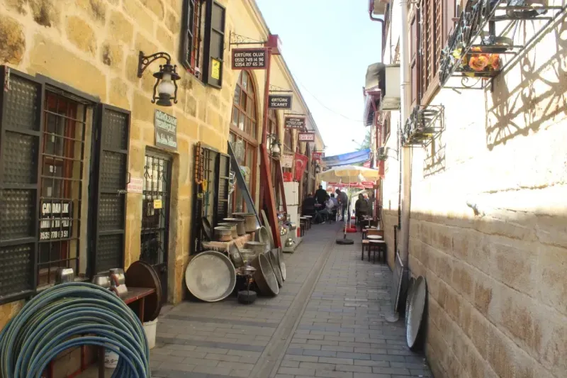 Tenekeciler Arastası’na giren vatandaşlar, tarihi atmosferde dolaşırken geçmişi anımsatıyor
