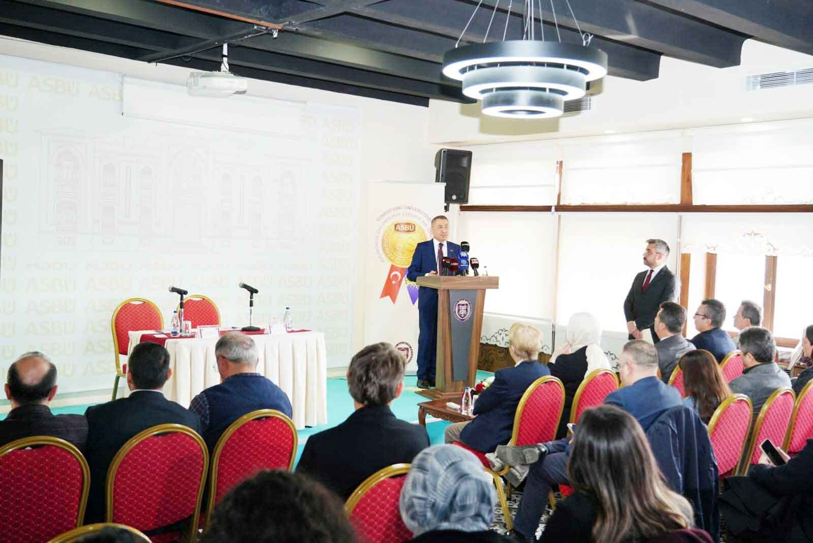 ASBÜ’de gerçekleştirilen söyleşinin ana başlığı “Bölgesel Krizler ve Türkiye” oldu. Fuat Oktay konuşmasında özellikle Türkiye’nin çevresinde yaşanan sıcak gelişmelere dikkat çekti.