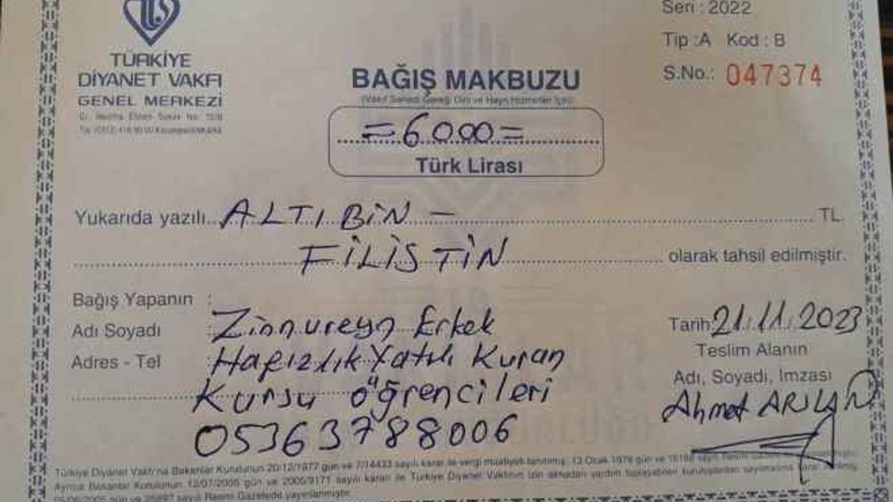 Hafız öğrenciler, Gazze'deki kardeşlerinin zorluklarına duyarsız kalmayarak, küçücük bir katkı ile büyük bir fark yaratmaya çalıştı. Bir araya gelen öğrenciler, topladıkları bağışı teslim ederken duygusal anlar yaşandı. Ahmet Yıldırım, bağışın toplandığı süreçte öğrencilere şu mesajı verdi: “Bu bağış, sadece para değil, aynı zamanda bizim Gazze’deki kardeşlerimize olan manevi desteğimizdir. Onlar, bu dünyada yalnız değiller, biz de onların yanındayız.” Öğrenciler, Gazze’deki mağdur insanlara olan desteğin ve kardeşliğin hiçbir zaman eksik olmayacağına olan inançlarını vurguladılar.