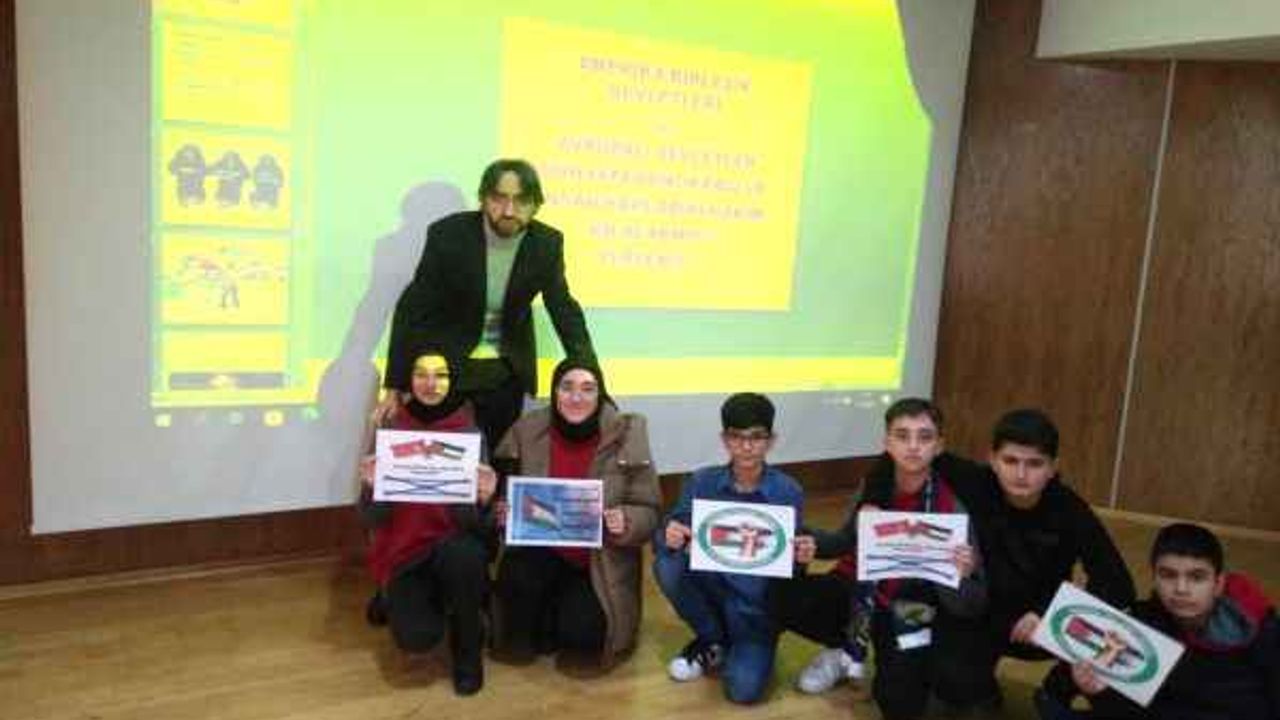Yozgat Merkez Ortaokulu konferans salonunda yapılan Demokrasi ve İnsan Hakları Haftası etkinliği düzenlendi. Düzenlenen etkinlikte öğrenciler tarafından İsrail’in Gazze’de yaptığı soykırım protesto edildi.