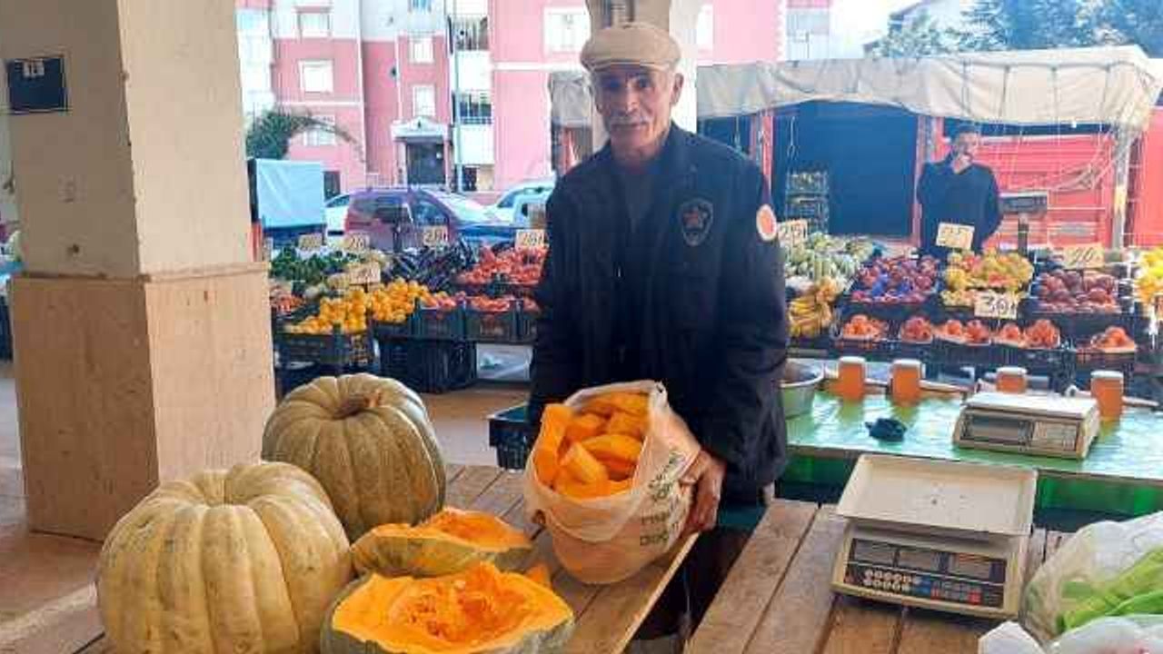 Kış ayının tatlılarından kabak satışı yapıyoruz. Köylerde sebze ve meyve olarak artık bir şey kalmadı. Artık kışlık kabak kaldı elimizde. Kabağı kendimiz yetiştiriyoruz. Bir kabak 15 kiloya kadar olabiliyor. Kilo işi veya tüm olarak verebiliyoruz. Köyümüz yakın olduğu için günlük olarak geliyoruz. Ben küçüklükten beri malzeme yetiştirip pazarlarda satıyorum” dedi.