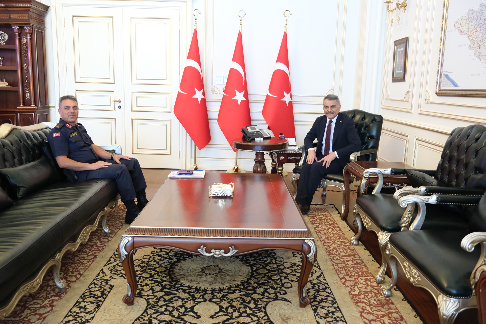Kıdemli Albay Cezmi Yalınkılıç, Yozgat Valisi Mehmet Ali Özkan’ı makamında ziyaret ederek il genelinde yürütülen çalışmalar hakkında detaylı bir brifing sundu. Suç ve suç unsurlarıyla mücadele, trafik güvenliği ve vatandaşların huzurunu artırmaya yönelik projeler hakkında bilgi veren Yalınkılıç, jandarma teşkilatının sahada etkin ve koordineli bir şekilde çalıştığını belirtti.