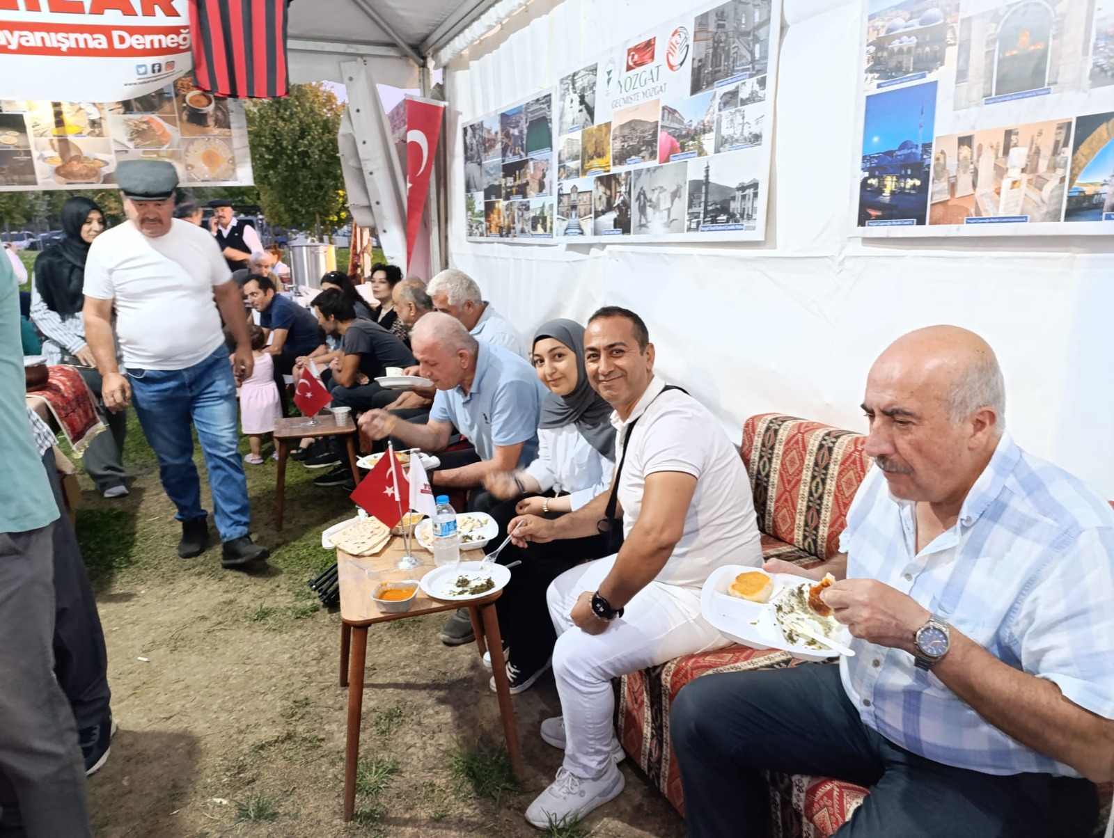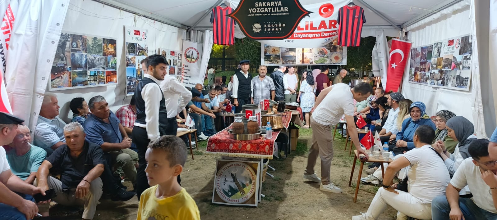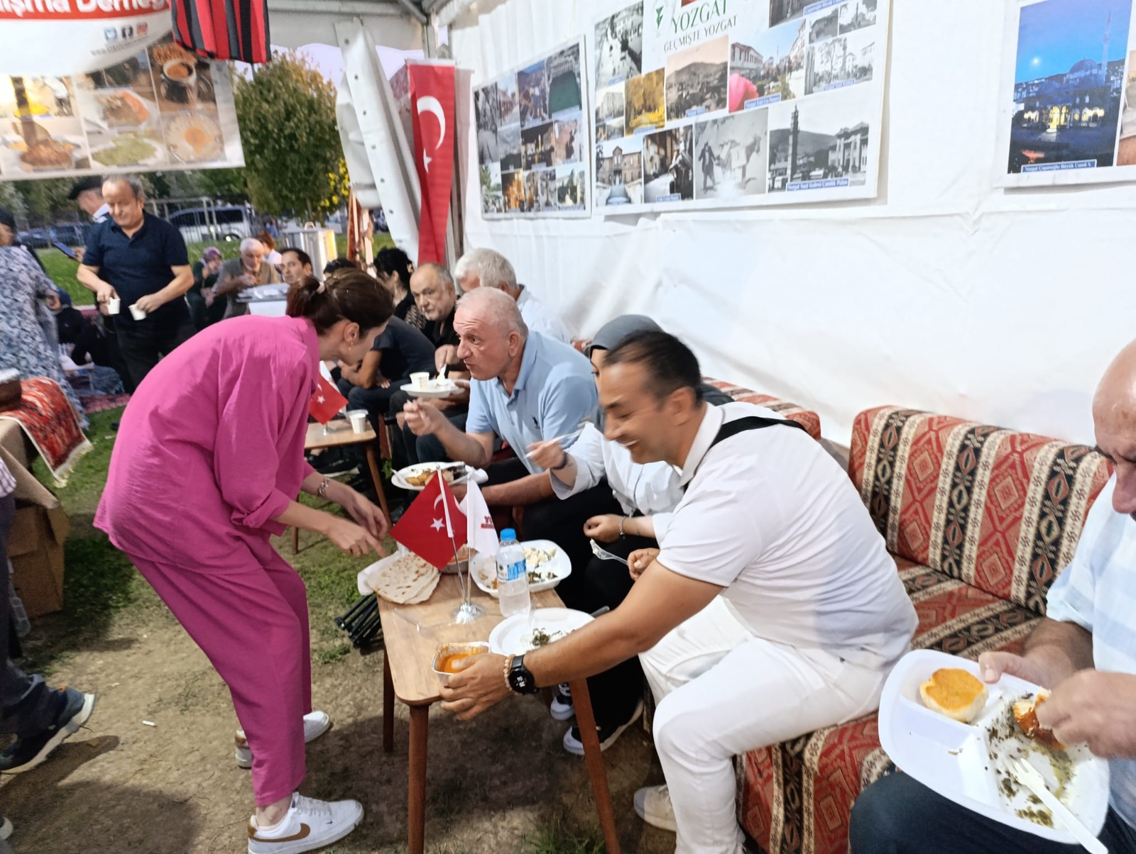Güzel insanlar, tüm Sakarya’nın dikkatinide çeken eşsiz bir gururu paylaşmak istiyorum sizlere. Her stand kurumlarına ve şehirlerine ait ürünleri satarken, derya bilgisi, asri donanımı, organize zekası ve cömert gönlüyle tüm Sakaryalıların yüreğini fetheden kral hemşehrimiz Murat ÜNAL’ın önderliğinde, Yozgat adına tarih, kültür, etnografya, coğrafya, müzik, spor, sanat ve geleneksel motiflerin sergilendiği harika bir stant tasarlanmış. Murat Bey hem kendisi, hem annesi, eşi, kardeşleri, yengeleri, yeğenleri ve ordaki gönüllü hemşehrileriyle açık alana ocaklar, saclı tandırlar ve fırın kurdurmuş. Orda peş peşe pişen Testi Kebaplarını, Sini Tatlılarını, Madımak, Arabaşı, Mantı, Gözleme, İşli, Börek ve Yozgat’la özdeşleşen Çıtır Baklava, Kavurga, Hedik gibi onlarca yöresel lezzeti tüm katılımcılara karşılıksız ikram ettiler. Adeta tüm Sakarya Yozgat standında çay, ayran, gileboru, yayık çalkaması ve koruk ekşisi içti, cehirlik kolonyasıyla, gülsuyuyla karşılandı, kavurga keseleriyle uğurlandılar. Yozgat standında oturacak bir santim yer kalmadığı gibi, her kazanın, her ocağın, her tandırın önü uzun kuyruklarla doldu taştı. Çokelikli işli, Omaç, Bulamaşı, Herle, Çullama, Mercimekli Pilav, Kulleme, Dönderme, Yüzlüklü Cacıh gibi Yozgat yemeklerini tatmayan kalmadı desek yeridir.