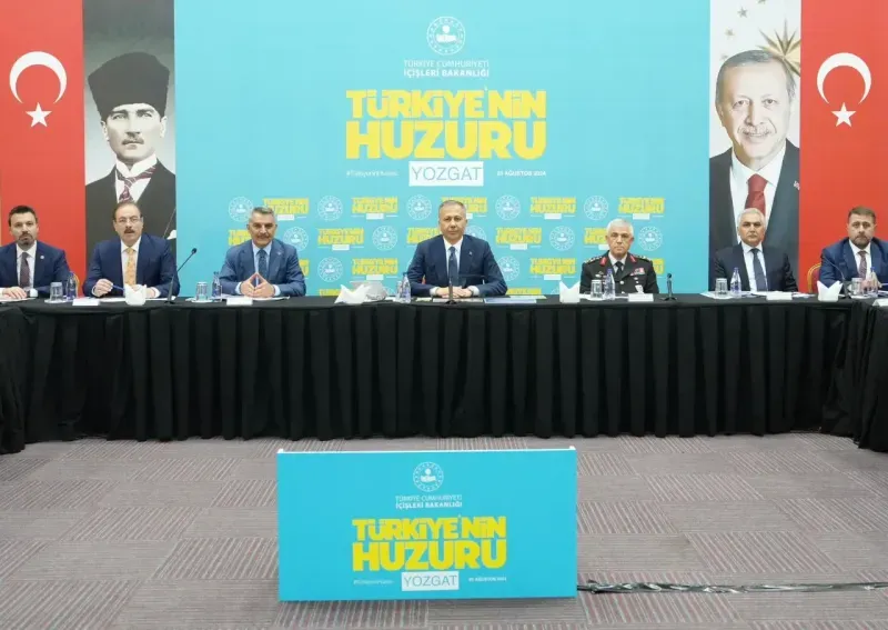 Gerçekleştirdiği temasların ardından Yozgat Cemil Çiçek Personel Eğitim Merkezinde düzenlenen Türkiye’nin Huzuru Toplantısına katılan Yerlikaya’ya Yozgat Valisi Mehmet Ali Özkan, AK Parti milletvekilleri Abdulkadir Akgül, Süleyman Şahan, MHP Milletvekili İbrahim Ethem Sedef, AK Parti Yozgat İl Başkanı Çelebi Altuntaş, MHP Yozgat İl Başkanı Tekin Irgatoğlu eşlik etti.
