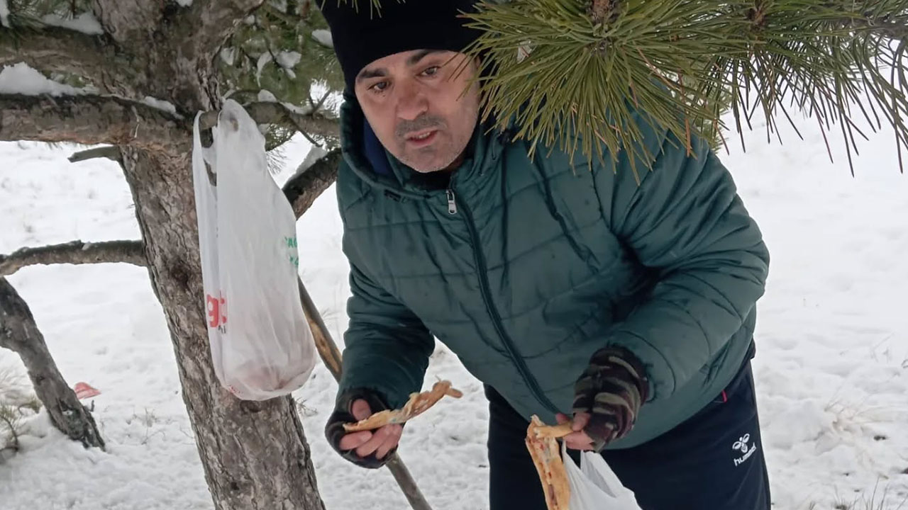 Zorlu hava şartlarına rağmen doğaya çıkan duyarlı vatandaşlar, sessiz dostlarımız için yiyecek bırakarak insanlığa umut verdi.