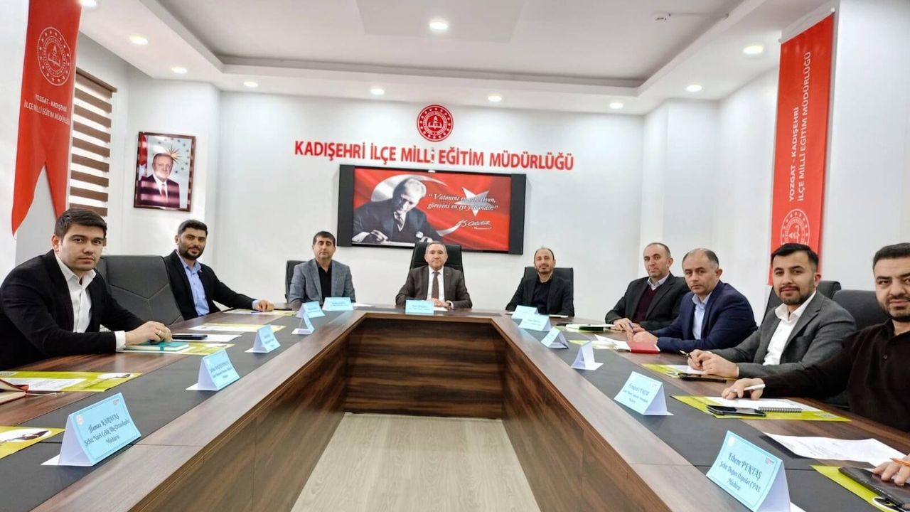 Kadışehri genelindeki okul ve kurum müdürlerinin katıldığı toplantıda eğitim-öğretim süreçlerine ilişkin güncel gelişmeler ve önemli gündem maddeleri değerlendirildi.