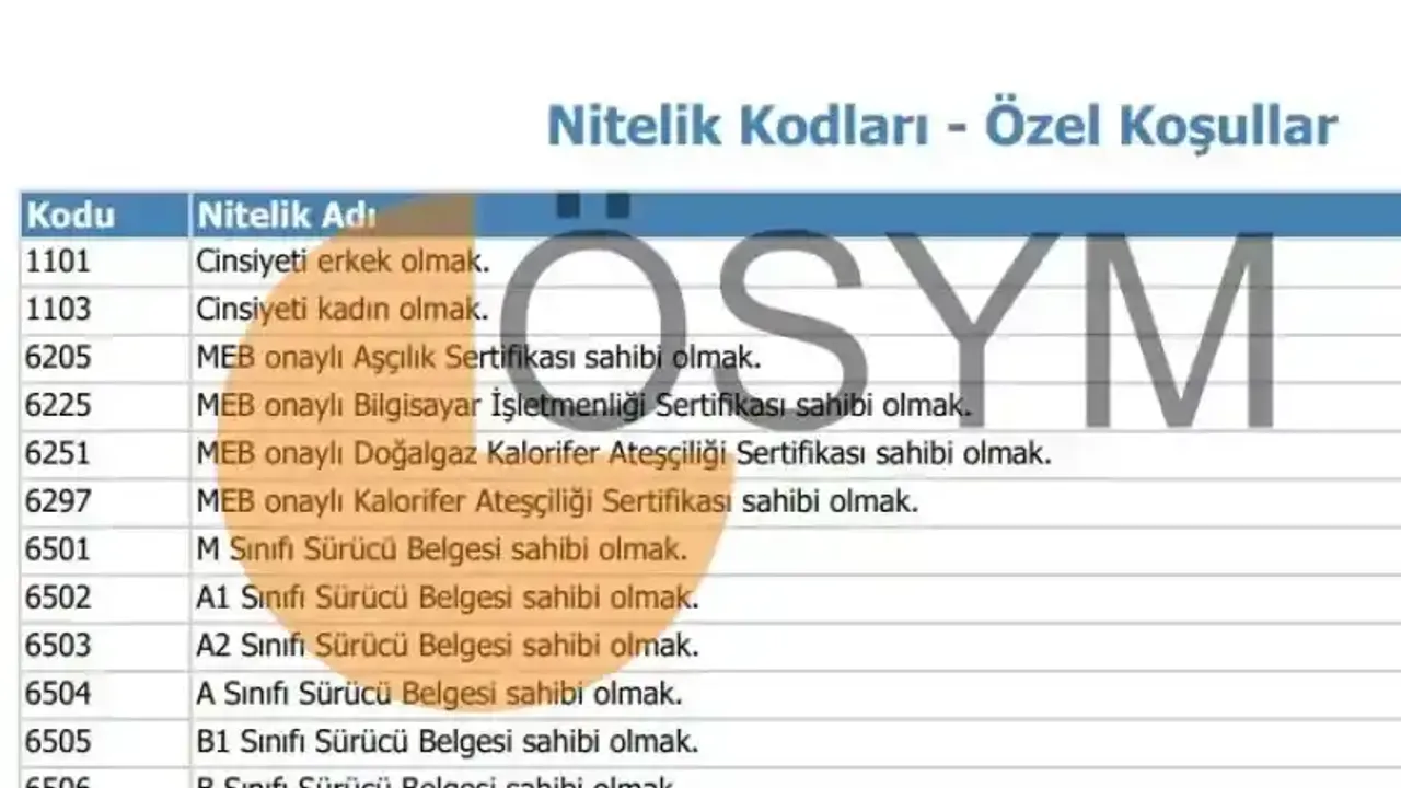 Bu kodlar, her bir kadro veya pozisyonun özel gereksinimlerini tanımlayarak, adayların uygunluklarını doğru bir şekilde değerlendirmelerine olanak tanır. Adayların, başvuracakları pozisyonun nitelik kodlarını dikkatle incelemeleri, yanlış tercihler yapmamaları için büyük önem taşır.