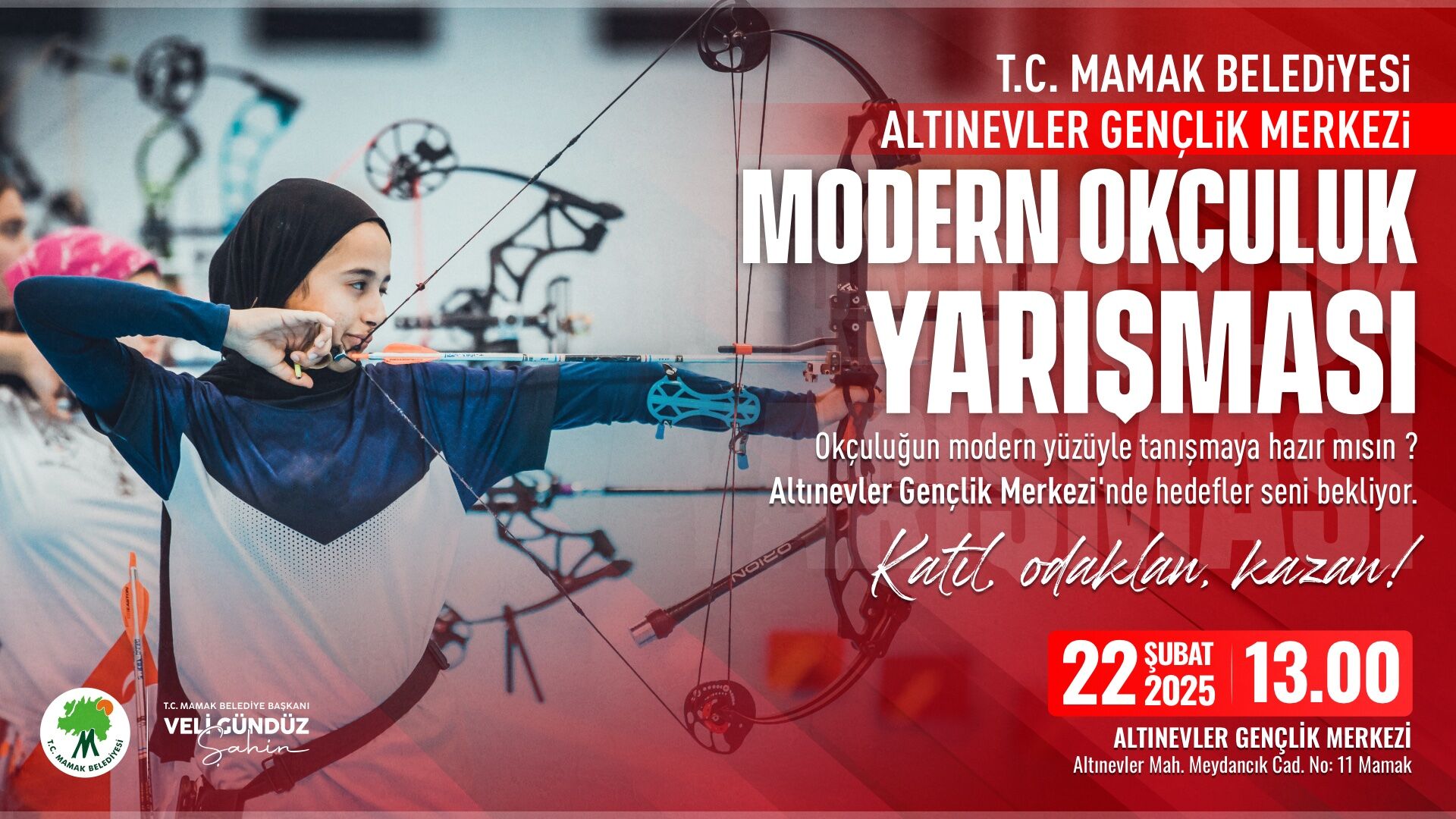 Gençlerin okçuluk becerilerini geliştirmelerini ve bu sporu daha yakından tanımalarını sağlamak için yapılan yarışma, 22 Şubat Cumartesi günü saat 13:00’de Altınevler Gençlik Merkezi’nde gerçekleştirilecek.