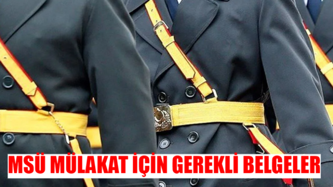 MSÜ mülakatına katılacak adayların yanlarında bulundurmaları gereken belgeler arasında mavi kapaklı şeffaf dosya, sınav çağrı belgesi, TC kimlik kartı (pasaport veya ehliyet), sağlık raporu, adli sicil kaydı, şehit/gazi belgesi ve terhis belgesi bulunuyor.