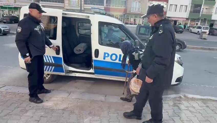 Polis ekipleri, yaşlı kadının eşyalarını taşıyarak kendisine eşlik etti. Yapılan yardım sayesinde Şerife teyze güvenli bir şekilde evine ulaştırıldı.