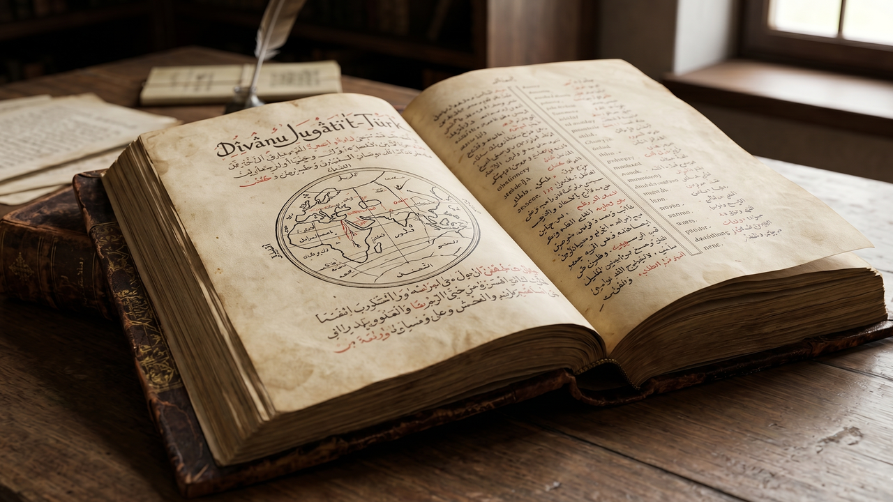 Kaşgarlı Mahmud tarafından 11. yüzyılda kaleme alınan Dîvânu Lugâti’t-Türk, Türkçeyi Araplara öğretmek amacıyla hazırlanmış bir sözlük niteliği taşıyor. Ancak eser, yalnızca bir dil öğretim kitabı olmanın ötesinde, Türk dilinin yapısını ve söz varlığını kapsamlı şekilde ortaya koyuyor.