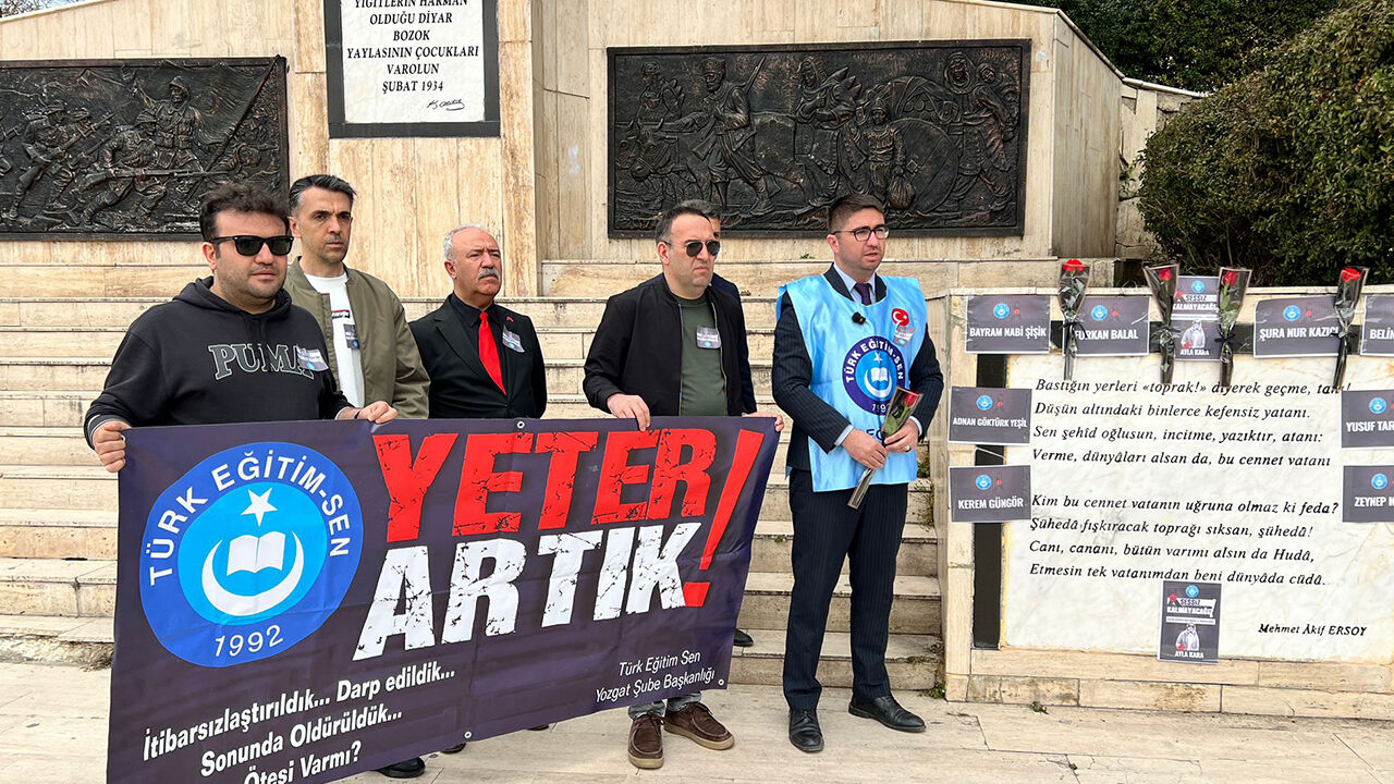 Yozgat’ta, Türk Eğitim Sen Yozgat Şubesi öncülüğünde düzenlenen etkinlikte, Şanlıurfa ve Kahramanmaraş’ta yaşanan saldırılarda hayatını kaybeden öğretmen ve öğrenciler anıldı.