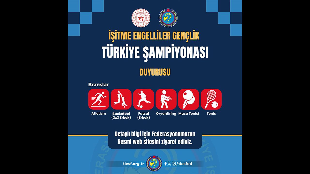 Avrupa İşitme Engelliler Gençlik Oyunları, 17–23 Ağustos 2026 tarihleri arasında Almanya’nın Hannover kentinde gerçekleştirilecek. Bu önemli organizasyonda Türkiye’yi temsil edecek genç sporcuların belirlenmesi amacıyla Türkiye İşitme Engelliler Gençlik Şampiyonası düzenlenecek.