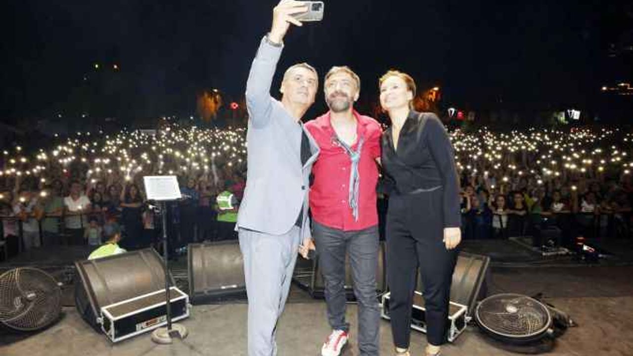 Belediye Başkanı Ramazan Şimşek ve eşi Yeşim Şimşek, Resul Dindar’a çiçek takdim etti ve Resul Dindar ile beraber alandaki Başkentlilerle sahnede öz çekim yaptı.