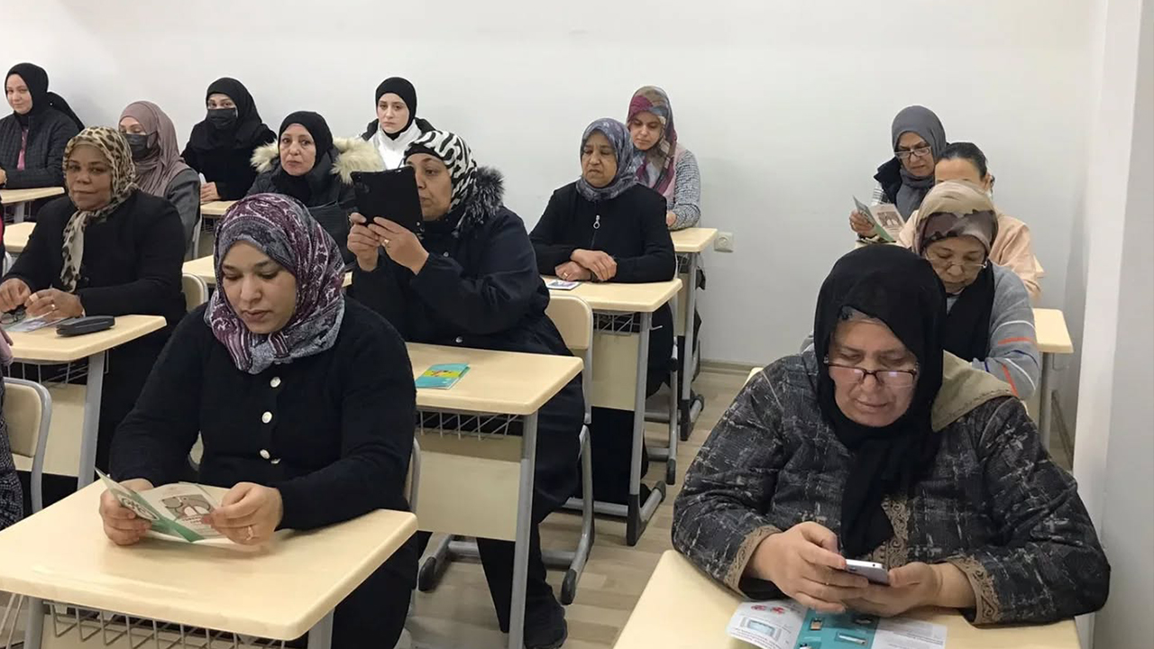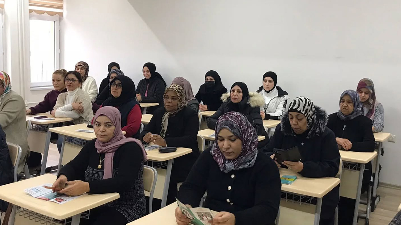 Halk Eğitimi Merkezi’nde gerçekleştirilen eğitim, kursiyerler tarafından ilgiyle takip edilirken, katılımcılar merak ettikleri soruları sağlık personeline yöneltme imkânı buldu. Eğitim sonunda, hastalıklardan korunmaya yönelik broşürler de dağıtıldı.