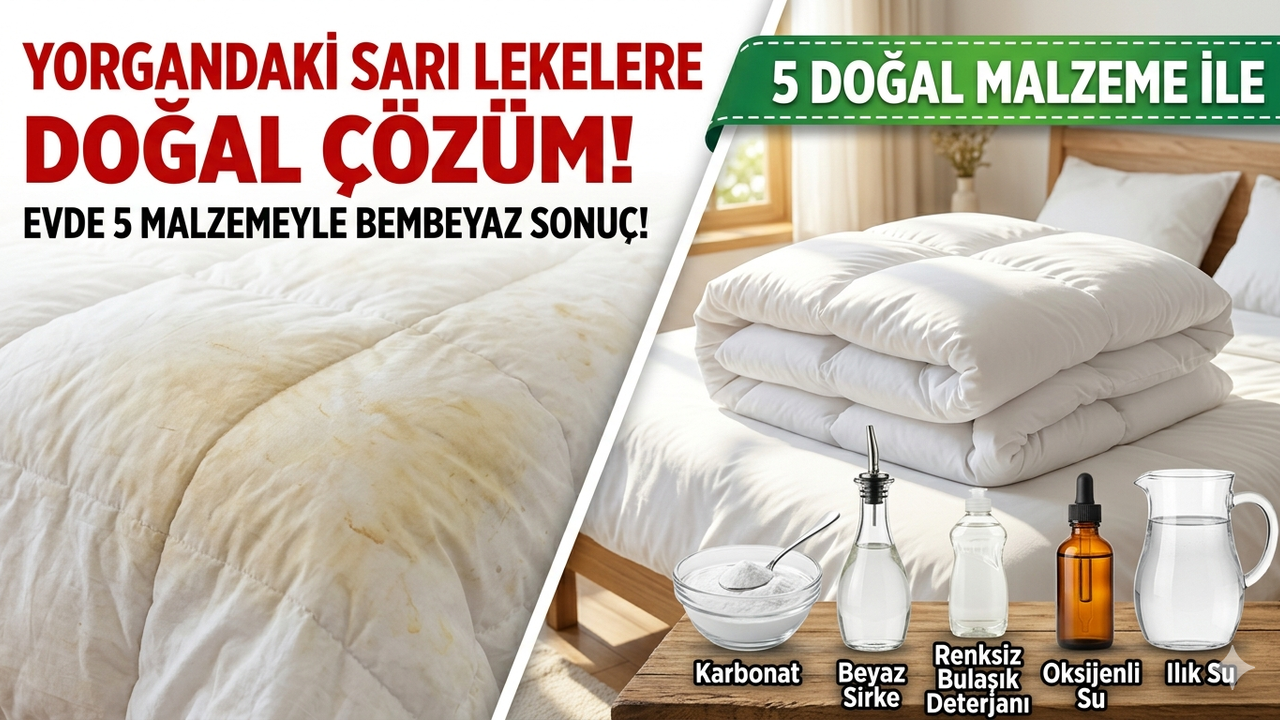 Kış aylarında yoğun şekilde kullanılan yorganlar, zamanla ter, nem ve toz birikimi nedeniyle sarararak hijyen açısından risk oluşturabiliyor. Özellikle mevsim geçişlerinde yapılan yanlış saklama koşulları, bu lekelerin kalıcı hale gelmesine neden oluyor. Ancak uzmanlara göre pahalı deterjanlara gerek kalmadan, evdeki doğal malzemelerle bu sorunun üstesinden gelmek mümkün.