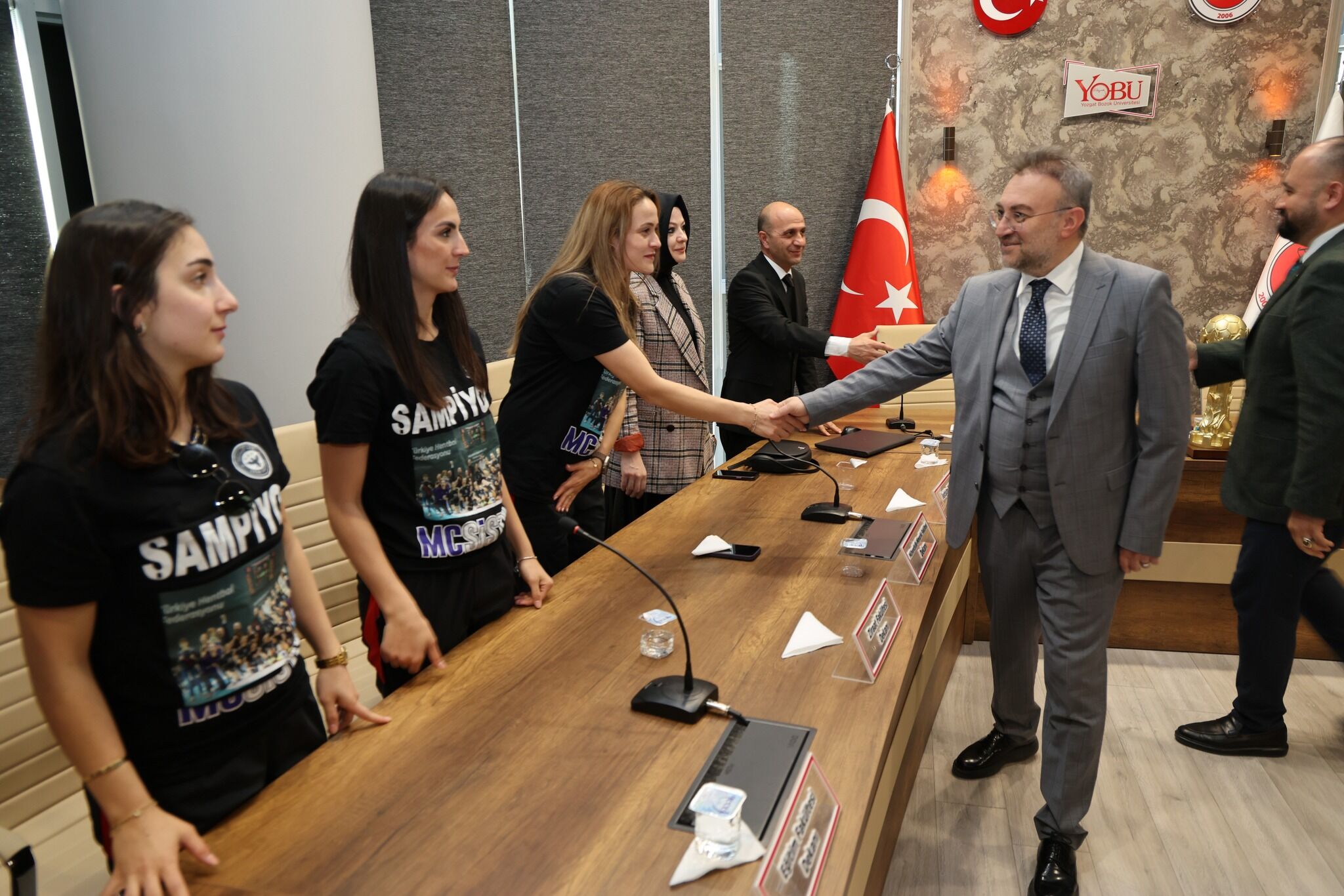 Kadınlar Hentbol Süper Ligi’ne yükselerek büyük bir başarı elde eden MC Sistem Yozgat GSK Kadın Hentbol Takımı, üniversite yönetimi tarafından tebrik edildi.