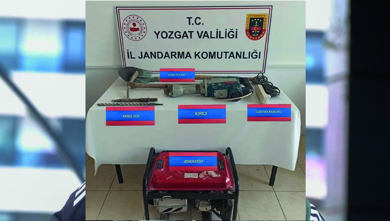 Operasyon sırasında olay yerinde yapılan aramada; 1 adet jeneratör, 1 adet kürek, 1 adet kırıcı delici hilti, 2 adet hilti ucu, 1 adet kazma, 15 metre uzatma kablosu ele geçirilerek muhafaza altına alındı.