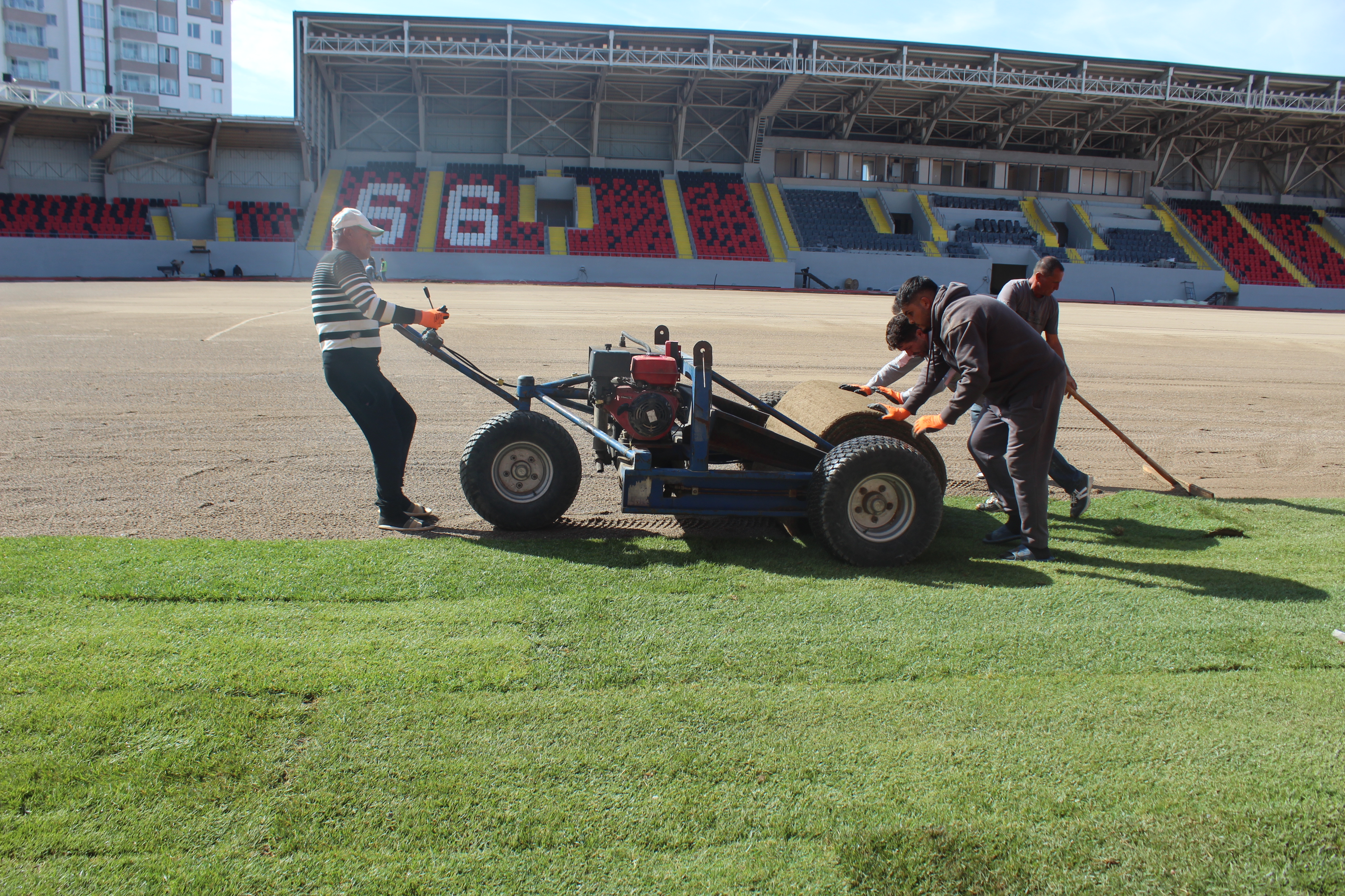 Stadyumda çim serimi çalışmalarında da sona yaklaşıldı. Ekipler, sahanın bir an önce tamamlanabilmesi için yoğun bir tempo ile çalışmalarını sürdürüyor. Doğal çimlerin serimiyle birlikte stadyumun zemin kalitesinin uluslararası standartlara uygun hale gelmesi hedefleniyor.