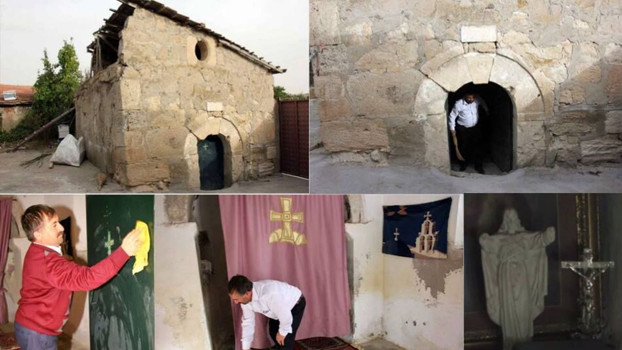 Yozgat’ın Sarıkaya ilçesine bağlı Terzili Mahallesi’nde hoşgörü ve birlikte yaşama kültürünü yansıtan anlamlı bir görüntü ortaya çıkıyor. Mahalle camisinin imamı Metin Halıcı, lojmanının avlusunda bulunan tarihi Ermeni kilisesini düzenli olarak temizleyip ibadete hazır tutuyor.