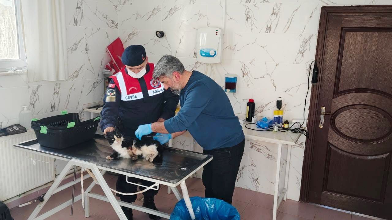 Yozgat’ın Boğazlıyan ilçesinde vatandaşlar bir kedinin yaralı olduğu ihbarında bulundu. İhbar üzerine Çevre ve Doğal Hayatı Koruma Timi harekete geçti.