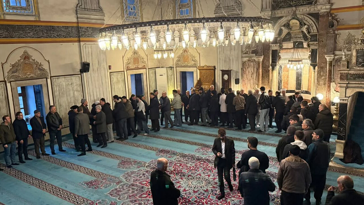 Bazı vatandaşlar cami avlusunda saf tutarken, kalabalığın büyük kısmı cami içindeki yerini aldı.