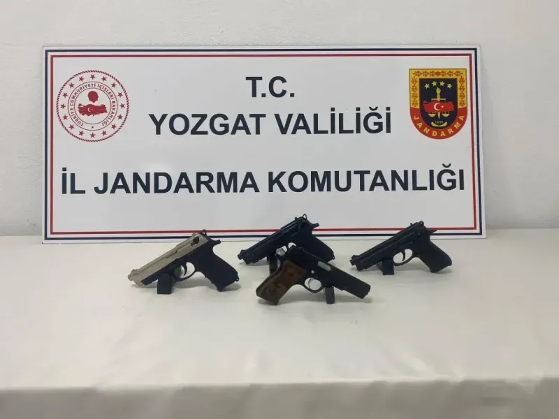Şüphelilerin üzerinde yapılan aramada 1 adet ruhsatsız tabanca ve 2 adet faturasız kurusıkı tabanca ele geçirildi.