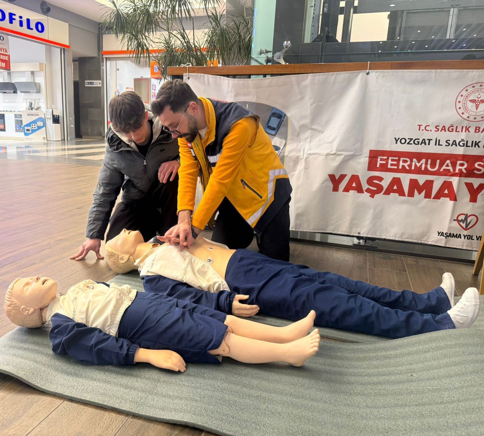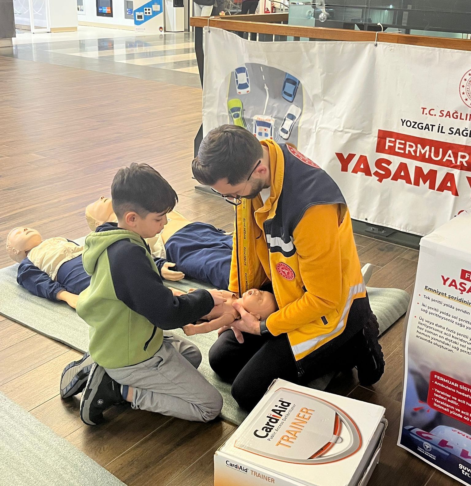 Eğitim kapsamında katılımcılara temel yaşam desteği, kalp masajı uygulamaları ve acil durumlarda doğru müdahale yöntemleri uygulamalı olarak aktarıldı. Maketler üzerinde yapılan gösterimler sayesinde, katılımcılar ilk yardımın hayati önemini birebir deneyimleme fırsatı buldu.