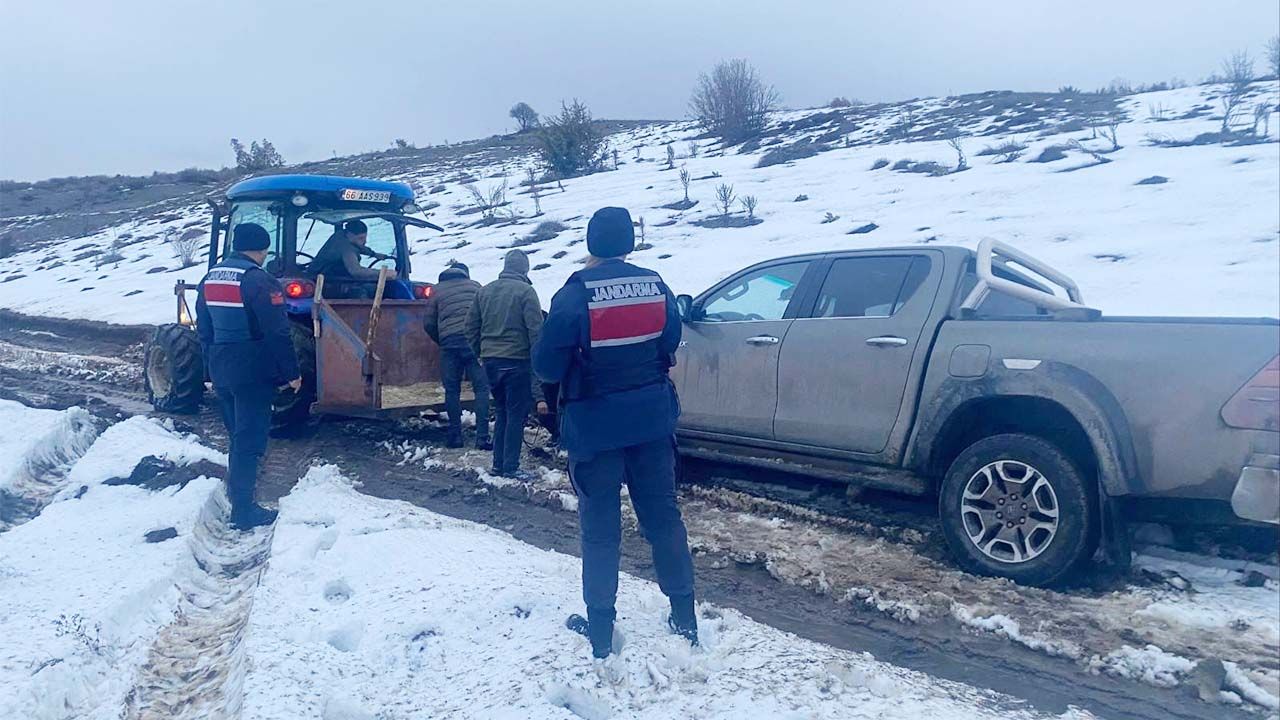 Benzer bir olay Yozgat Merkez İlçe Jandarma Komutanlığı sorumluluk alanında bulunan Recepli Köyü yolu üzerinde yaşandı. Yoğun kar ve tipi nedeniyle bir aracın yolda mahsur kaldığı yönünde ihbar alan jandarma ekipleri, vakit kaybetmeden bölgeye sevk edildi.