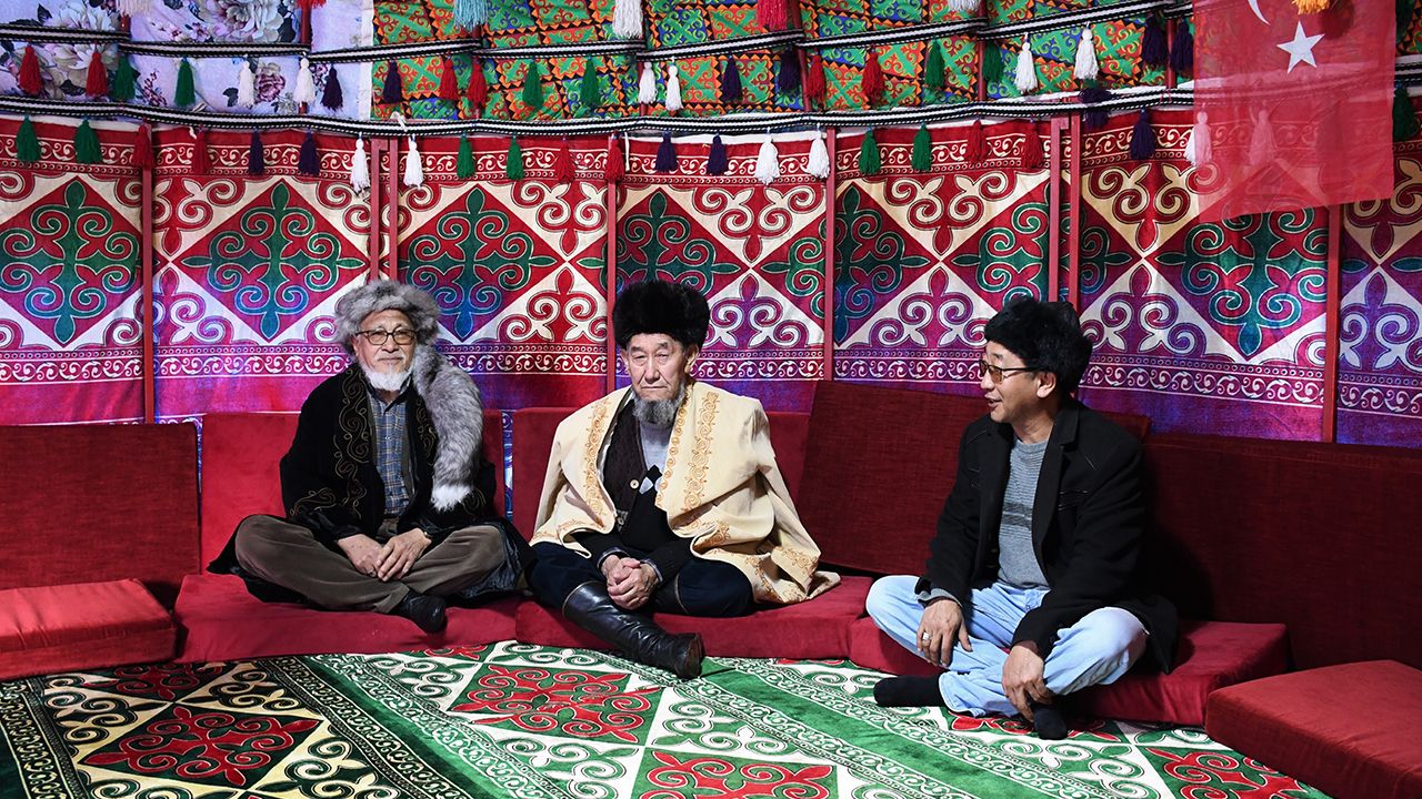 Kurulan Kırgız otağında buluşan aksakallılar, hem geçmiş günleri yâd ediyor hem de genç kuşaklara kültürel değerlerini anlatıyor.