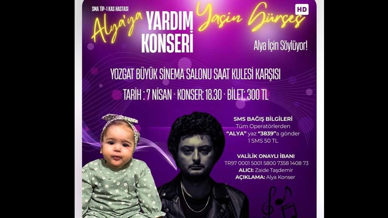 Konserin, hem Alya bebeğin tedavi sürecine maddi destek sağlaması hem de SMA hastalığı konusunda toplumsal farkındalığı artırması hedefleniyor. Yozgat’ta düzenlenecek etkinlik, dayanışma kültürünün güçlenmesine katkı sunacak.